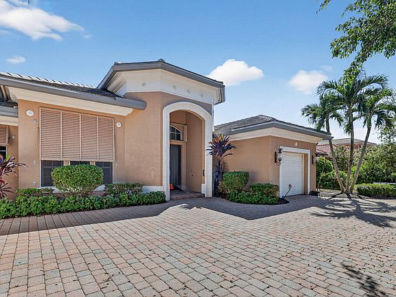With over 3600 sq ft, this 1-story Toll Brothers built home boasts 4 bedrooms, 3.5 baths along with a den/office. New roof in 2023. Whole house generator, Enjoy a wonderful chef's kitchen with double islands, Butler's bar, granite, ample counter seating as well as eat-in breakfast area. Entertain formally in the living and dining room or casually under the large covered patio with outdoor pool overlooking an expansive lake view with golf course beyond. Tucked on a cul de sac, privacy with panoramic water describes the views. Whether a golfer or boater, Palm Cove has what you want. A newly renovated golf course (membership not mandatory) or 93 slip marina, with boat slips available for purchase. If that's not enough, the clubhouse has fitness center, heated pool, tennis courts, playground and social activities galore!! Come live the dream at Palm Cove