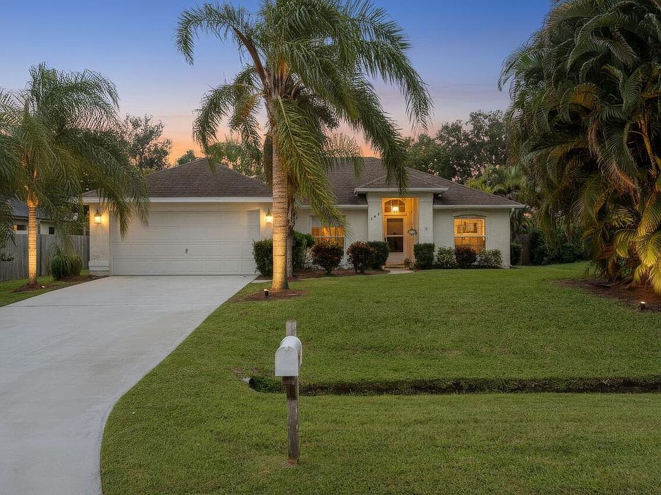 Looking for privacy and a larger lot? This 3-bedroom, 2-bath canal home offers an open floor plan with hardwood floors & an updated kitchen featuring granite counters. Spacious primary bedroom includes double walk in closets, the split floor plan allows for extra privacy from the other 2 bedrooms. A screened patio opens to an oversized yard with access to the C-23 canal, perfect for fishing or kayaking. Recent updates include a 2019 roof and newer water heater. NO HOA- bring your toys & enjoy flexibility and peace of mind. Located off Becker Rd with and close to Tradition's shopping &, dining new . New hospital located down the street plus easy access to I-95 and the Turnpike for easy commuting. Just 25 minutes to the beach, this home combines comfort, lifestyle, and accessibility.