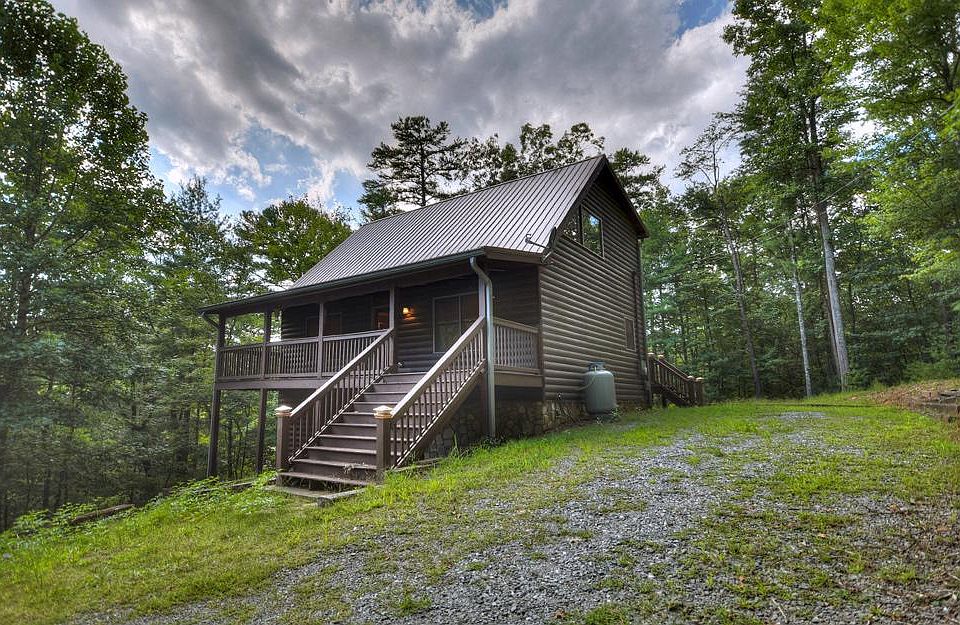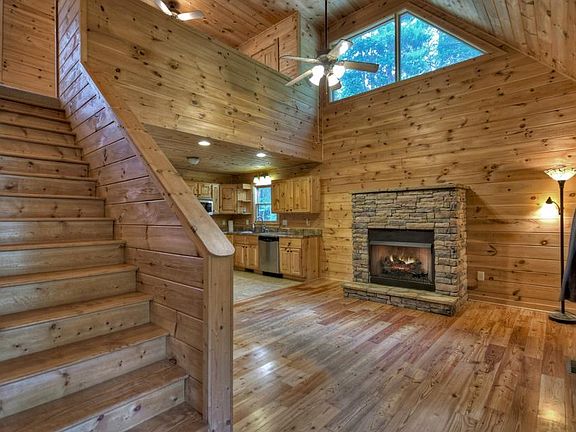 Cozy Cabin in Quaint Golf Community...this charmer is nestled in the woods boasts a storybook setting on the edges of a gorgeous rolling golf course between historic Blue Ridge & Ellijay...2 bedroom/2.5 bath plus lovely loft area, warm stone fireplace adorns spacious family room, soaring ceilings promote open feel & all wood interior provide cozy comfort, updated kitchen features plentiful cabinets & stainless appliances, metal roof is great for those rainy nights, covered rocking chair porch surrounded by wooded mountain views and fabulous area for fire pit & outdoor entertaining, grilling deck, full ready to finish terrace level is great for expansion...guest quarters, den, home office & more...or extra storage...it's the ultimate vacation cabin or private mountain getaway, or perfect for full time living... great investment! It's a must see and close to hiking and biking trails, lake and river, and more!