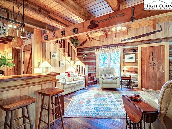 Incredible home at the beginning of Headwaters. This cabin was on the property prior to Headwaters development and was grandfathered in. The cabin was constructed by a gentleman who owned Rare Woods, a company that sold all types of beautiful wood. These are featured materials in the total construction. The text under the photos describes the various kinds of wood used in the house; the combinations are gorgeous! Listen to the rushing water in the creek far below the outdoor decks. Enjoy the trail to the creek right outside your front door. Some furnishings convey, some are negotiable. Amenities at Headwaters include a clubhouse with a fitness center, theater room, game room, large, comfortable lounge with kitchen, and incredible views from the decks. Also includes tennis/pickleball courts, lakes, parks, and hiking trails. Short-term rentals with a 7-day minimum are permitted.