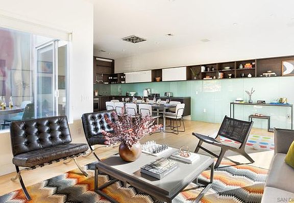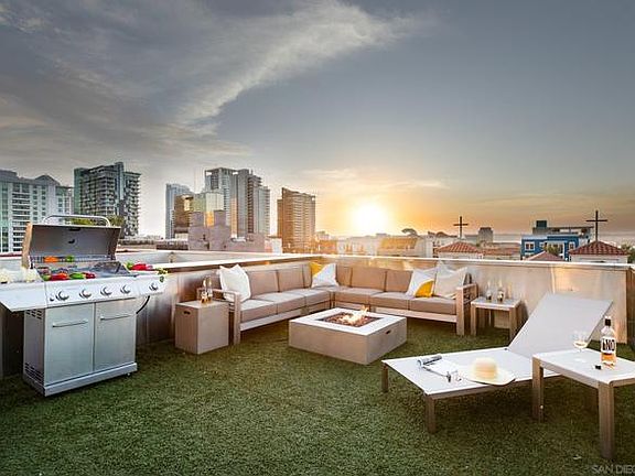 An architectural masterpiece designed by renowned architect Sebastian Mariscal, this single-family home is located in the heart of Little Italy. A meticulously planned space filled with volume & light, this home features 4 BRs, a den + 3 baths. Amazing finishes include maple floors, walls of obscure glass & custom lacquered cabinetry to create a 1-of-a-kind space. 3 outdoor balconies, including a large roof deck with stunning harbor views, provide a place to enjoy SD's gorgeous weather all year. Great for short-term vacation rentals as well! In unit washer/dryer + central AC included. 1 car garage included, plenty of street parking available.