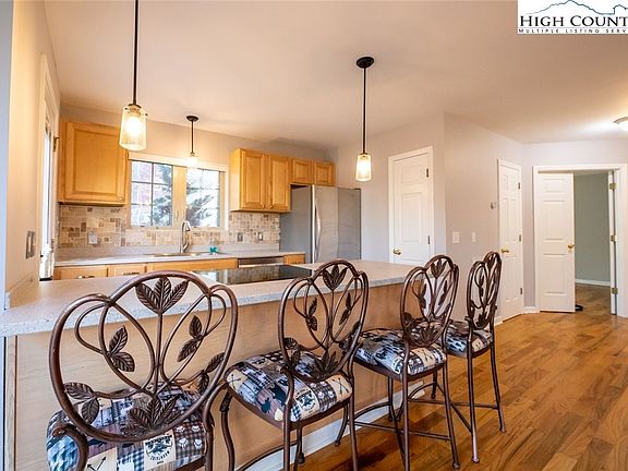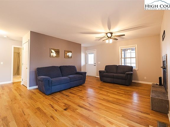 This mountain retreat is move in ready! The subdivision is conveniently located near Shatley Springs, Jefferson, West Jefferson and the New River. Find this secluded haven nestled into the wooded serenity of WNC. With minimal neighboring properties, you can enjoy the privacy of the oversized, newly stained, and partly covered porch with seasonal views overlooking your gently sloping lot and flagstone fire pit. Beautiful hardwood flooring and an open-concept kitchen and living area. Easily accessible at the main level entry and the finished walk out basement level, as well as a plethora of parking between two driveways. This well-cared for and charming refuge has received several updates and upgrades including newly installed organization system in the large walk-in closet, fresh paint, new countertops, deep kitchen sink, faucet, washing machine, and blinds just to name a few of the improvements! Easy to show and ready for new owners. Short and long term rentals permitted! **MOTIVATED SELLER!**