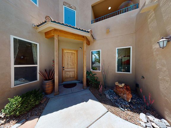 Extremely hard to find exquisite property in the heart of Rio Rancho. ZERO spared on all int and ext upgrades and amenities... too much to mention, BEST chef's kitchen you have ever seen, that opens up to entire home. Barely lived in 6.5 years old, majorly upgraded, that shows brand new. Over the top indulgence amenities - then ADD forever mountain and Rio Grande Bosque views! When compared: corner private lot, views of everything, dream kitchen, MSTR suite w large walk in his/her clsts, private view deck, 4 CAR GRG and 1000 SQFT RV GRG-FULL HOOKUPS, 2 Custom Gates and security courtyard, 2 Water Features and Extra land! Feels and looks like BRAND NEW HOME. Excellent... nationally ranked schools and major conveniences just minutes away. SEE FULL FEATURE SHEET AND 3D VIDEO!