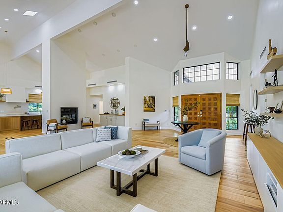 Welcome to this stunning 4-bedroom plus office home nestled in coveted Equestrian Estates. Modern with clean lines and warm high-end finishes, this home is set on a large lot with spectacular mountain views and has been recently upgraded with over $500,000 in improvements. Inside, an open, flowing floor plan with soaring 24-foot cathedral ceilings and abundant natural light creates an ideal setting for both entertaining and everyday living. Natural hickory hardwood floors and white oak finishes bring an organic, contemporary aesthetic. The interior is truly magazine-worthy—designed with a level of sophistication and detail that feels straight out of Architectural Digest. The gourmet kitchen showcases custom cabinetry, an 11-foot island, and premium appliances. The master suite is elegant and spacious. The master bathroom features a free-standing stone resin tub and Grohe fixtures. Additional highlights include beautiful bathrooms, custom closets, and smart home features throughout. Designed for seamless indoor-outdoor living, the North facing backyard is a true retreat with a saltwater pool and Baja shelf, expansive travertine patio, and lush landscaping. A custom kitchen garden with hummingbird-attracting plants adds a special touch, providing fresh herbs for cocktails and salsa right at your doorstep. This is a true turn-key homeready for its next owners to enjoy Arizona's best weather, festive holiday gatherings, and the beauty of fall in the desert.
