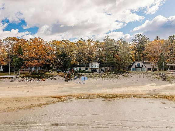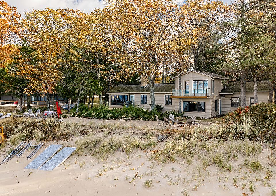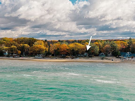 Get ready to enjoy 100 feet of private, sandy East Bay shoreline with sweeping sunset views from nearly every room. The walk-in sandy bottom is ideal for swimming, boating, kayaking, and summer gatherings, while the west-facing exposure offers postcard sunsets year-round. Located on a quiet, private road with year-round maintenance, the property sits just ~30 minutes from downtown Traverse City and ~10 minutes from Elk Rapids—close enough for convenience yet surrounded by peaceful privacy.