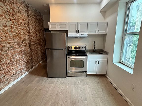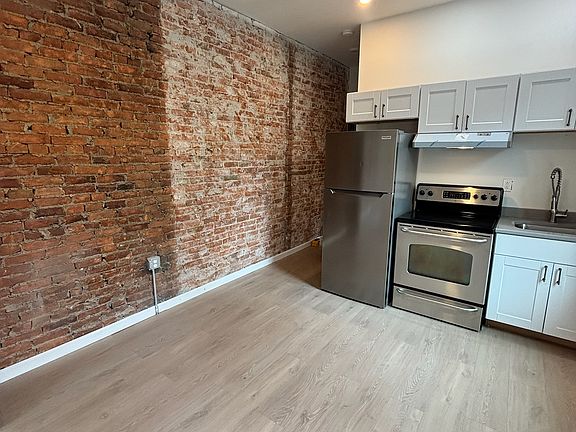 Renovated kitchenExposed brickHardwood floors