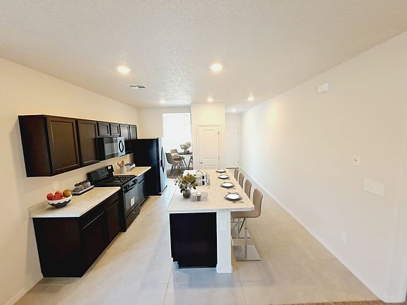 Welcome to your dream home in Los Lunas, NM! This 3-bedroom, 2-bathroom house is a perfect blend of comfort and modernity. The spacious backyard is fully fenced, providing a secure and private outdoor space for you to enjoy. The house comes with a garage, complete with a garage opener for your convenience. The patio is perfect for outdoor dining or simply enjoying the beautiful views. Inside, the house is equipped with a dishwasher, stove/oven, refrigerator, and disposal, making meal prep and clean-up a breeze. The built-in microwave adds to the convenience. The house also features refrigerated air, ensuring a comfortable environment year-round. Ceiling fans in each room add to the comfort and aesthetic appeal. The house also boasts a keyless entry system, adding an extra layer of security. This 3 bed 2 bath new construction with a large backyard is waiting for you to make it your home!