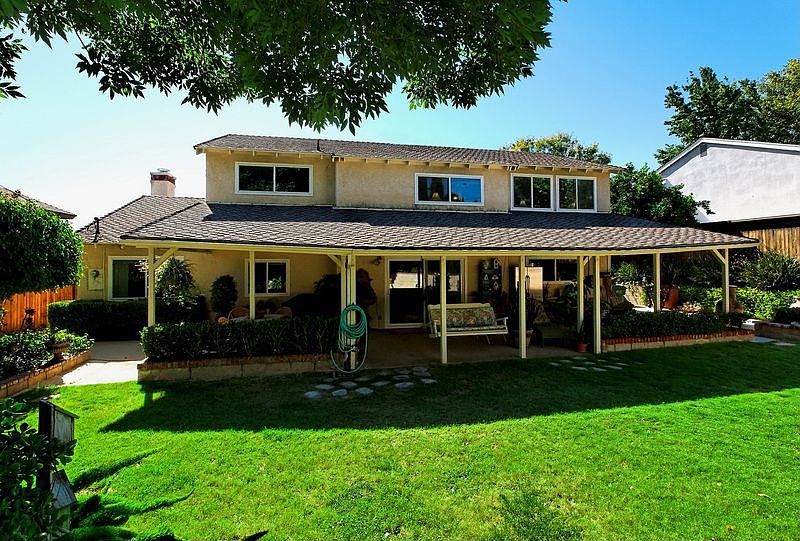 Offering a wonderful foothill location in one of North Central Simi Valley's nicest neighborhoods, this rare Nob Hill home is waiting just for you! Displaying excellent curb appeal with an oversized brick-ribboned driveway, a brick porch, drought tolerant landscape and plenty of RV parking access! Features include 5 bedrooms plus a bonus room or 6th bedroom with a direct access door to the backyard. There are two possible downstairs bedrooms with a full hall bathroom, a double door entry stepping into a spacious living room with a floor to ceiling brick fireplace, front windows with plantation shutters, a dining room with a chandelier, a granite kitchen with stainless appliances and a breakfast bar and a family room with a slider to the private backyard displaying a grassy yard, a fountain, a large covered patio, a shed and much more! There is a downstairs laundry area adjacent to a direct access door to the 2-car garage with a sectional roll-up door, a work bench and lots of built-in storage! Other features include crown molding, dual paned windows, and a master suite with dual closets, and an updated master bathroom. The secondary bedrooms are spacious and inviting. This wonderful home offers versatility and is convenient to great schools, parks & more!