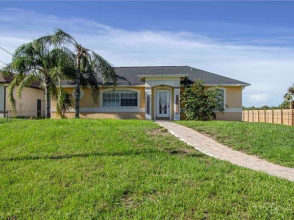 Pool home is the perfect size and price point for the first time homebuyer. A well-constructed, concrete block home, with three generously sized bedrooms and two full baths, laid out in a desirable split floor plan. Master bedroom could easily accommodate a king sized bed and has a walk in closet. Kitchen and living areas open to the covered patio and pool deck. Picture spending your weekends with family and friends, enjoying the outdoors and relaxing in your private pool. The 75ft wide lot does allow access to the back yard around side of the home with room for barn or detached garage. Fenced and gated with paved driveway and parking area. Agents see remarks.