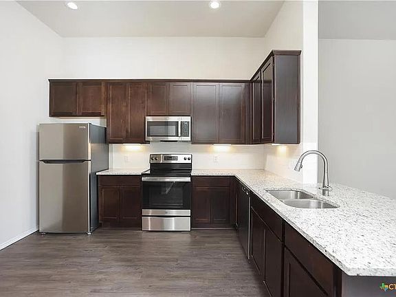 Beautiful Jordans Creek Subdivision located in Navarro ISD is a BRAND NEW construction duplex community is located 30-minutes from San Antonio and 20-minutes from New Braunfels and 30 min from Kyle in Seguin, TX. Open kitchen with recessed lighting, granite countertops, 42 inch cabinets, and tasteful backsplash lighting.