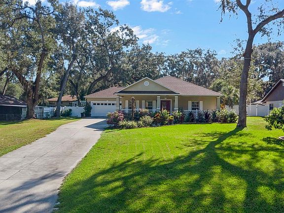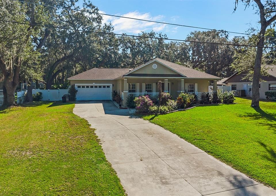 Your Dream Home is here! NO HOA, NO CDD, LOW TAXES… Large Private Fenced Backyard.. Newer Roof Only two years old and Newer AC less than 1 and a Half Years Old, all this on Nearly a Half Acre Lot, Very Large and Long Driveway, Features Stainless-Steal Appliances and Includes Samsung Washer and Dryer. This Peaceful, Private, Exclusive Home in the Heart of Fruitland Park, Just Minutes from the Downtown area and Historic Library and Lake Griffin State Park, which boast canoeing, camping, bike trail, walking trail, fishing, very quiet family oriented. The Home is Nestled between the World Famous Villages. And Leesburg. Your New Spacious Home features newer waterproof laminate flooring throughout living areas. The open kitchen has newer granite counter tops and plenty of storage cabinets overlooking the large and spacious Living Room, with natural lighting from the Gorgeous backyard. Bedrooms feature large walk in Closets and wait to you see your Large Newer Gorgeous Lanai with Recently Sealed "BRICK PAVERS“ which will be your perfect spot for entertaining or relaxing for Large Groups of friends and family, while you watch the little ones play in their Very Large, completely Fenced in Yard and beautifully landscaped. This is a solid home with poured concrete walls, recently updated and upgraded with many of new features including a newer roof (March 2023), front porch railings, irrigation controls, garage openers, garbage disposal, and newer ceiling fans. The backyard is fenced and freshly landscaped front and rear. This beautifully updated Home is Located just minutes from shopping, restaurants, Publix and Walmart and The Villages, this home also offers easy access to the Harris Chain of Lakes and the historic downtowns of Leesburg, Tavares, Eustis, and Mount Dora. You have not only found you peaceful, tranquil home here, but you will encounter a charming neighborhood, Great Neighbors, just a complete Quite, picturesque Home and Neighborhood.