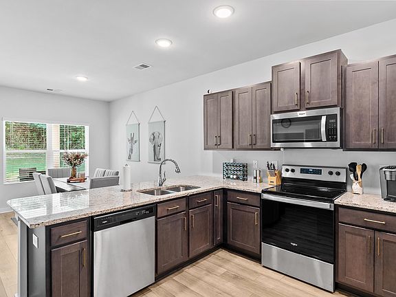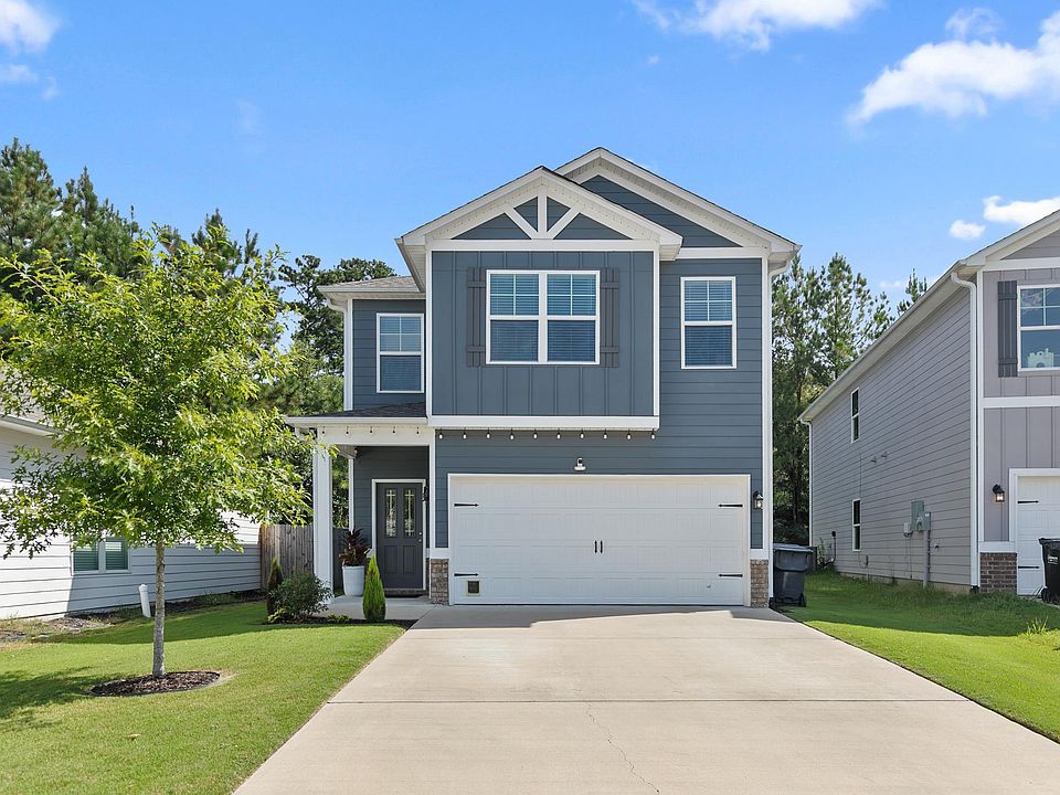 This beautiful 4-bed, 2.5-bath home is located within a newer community & offers the perfect combination of comfort & style. Built just 3 years ago, the home features a modern open-concept floor plan with spacious living & dining areas ideal for everyday living & entertaining. The kitchen is a chef’s dream, complete with sleek stone countertops, ample cabinetry, & quality finishes that flow seamlessly into the main living area. Upstairs, the spacious primary suite includes a sitting area, creating a peaceful retreat within your own home. The en-suite bathroom features dual sinks with stone countertops, large shower, tub & generous closet. 3 additional bedrooms offer flexibility for guests, home office needs, or a growing family. Step outside to enjoy the covered patio which backs up to a wooded area for added tranquility. Situated on a cul-de-sac, the home benefits from low traffic & peaceful atmosphere. With its thoughtful layout & modern finishes, this home is ready & waiting for you