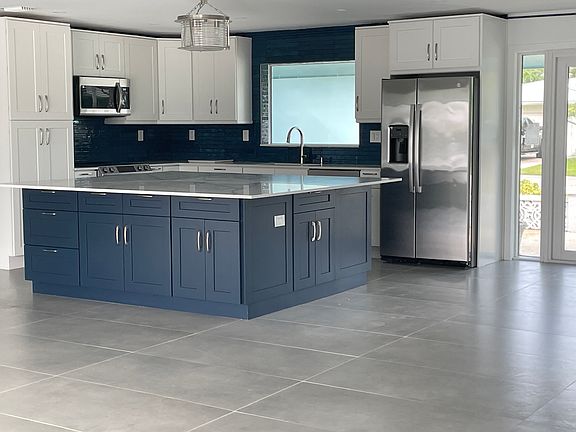 Waterfront Home with Heated Pool, on large, deepwater canal, 95 ft dock, with NO Fixed Bridges. Completely remodeled in 2025. New Dock, Seawall, Pool, Metal Roof, Hurricane Windows, Doors, Cabinets, Fixtures, and Appliances.