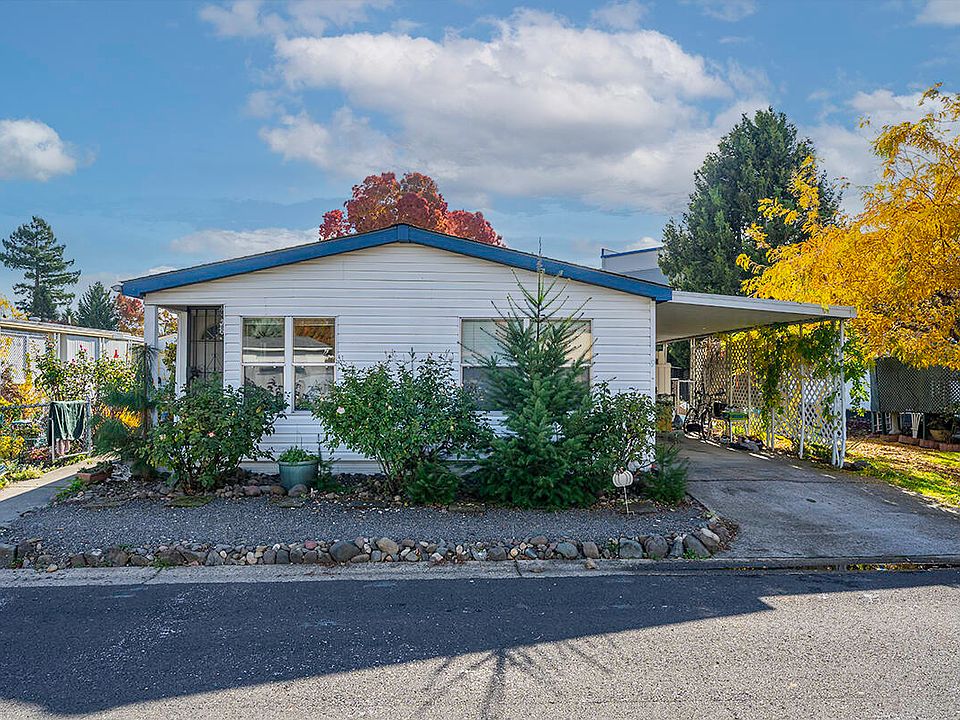 Location, location, location! Looking for a charming home in a 55+ community? If so, this is the one for you! This 1990-built home features 3 bedrooms, 2 bathrooms, 1056 sq ft, open floor plan, all appliances included, vaulted ceilings, enclosed patio, spacious yard, attached carport, detached shed, landscaped front and back, & much more! Space rent is $845 per month and includes clubhouse, pool, & gym. Great opportunity for anyone looking for a low maintenance property close to everything Medford has to offer!