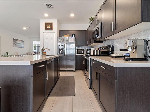 Welcome to Aquabella, a premier gated community! This stunning 4-bedroom, 2 and 1/2-bathroom home offers a spacious open floorplan with porcelain tile on the first floor and laminate flooring on the second floor , a modern kitchen featuring stainless steel appliances, and a large quartz island. The first floor includes a half bath, while upstairs boasts a master suite with a walk-in closet and ensuite, plus three more bedrooms and a laundry room. Enjoy the private backyard, perfect for entertaining. Aquabella amenities include 24-hour security, a clubhouse, pool, fitness center, kids water park, pet facility, and more. Close to top schools, conveniently located near highways, shopping, and dining