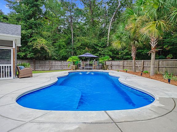A MUST SEE in desirable Cedar Springs, Johns Island. Come enjoy your little Oasis with an stunning inground pool. When you enter this one level home you are greeted with a large foyer and beautiful hardwood floors leading to an open and bright floor plan. The large living room has vaulted ceilings, kitchen is equipped with lots of counter space, granite counter tops and stainless steel appliances, dining room right off the kitchen, separate laundry room with tons of added cabinets, 3 bedrooms and 2 full baths. One bedroom has a built-in murphy bed and shelving on either side. The master bedroom is large with tray ceilings, wonderful custom walk-in closet. Master bath has granite counter tops, dual vanity, and walk-in shower. As you find your way outside youwill be enjoying a secluded view from the comfortable screened porch. The porch leads to the beautiful inground salt water pool with custom app controlled lighting, deck jets and tons of surrounding patio area. This home offers a massive drive way with additional graveled parking for your Boat, RV, or more vehicles. The true 2 car garage has tons of space for parking and/or workshop. Some special features about the home include, a neighborhood with NO HOA, custom plantation shutters, upgraded lighting, and fenced yard complete with Rainbird remote controlled irrigation system. Don't miss the chance to see this gem; schedule an appointment today.