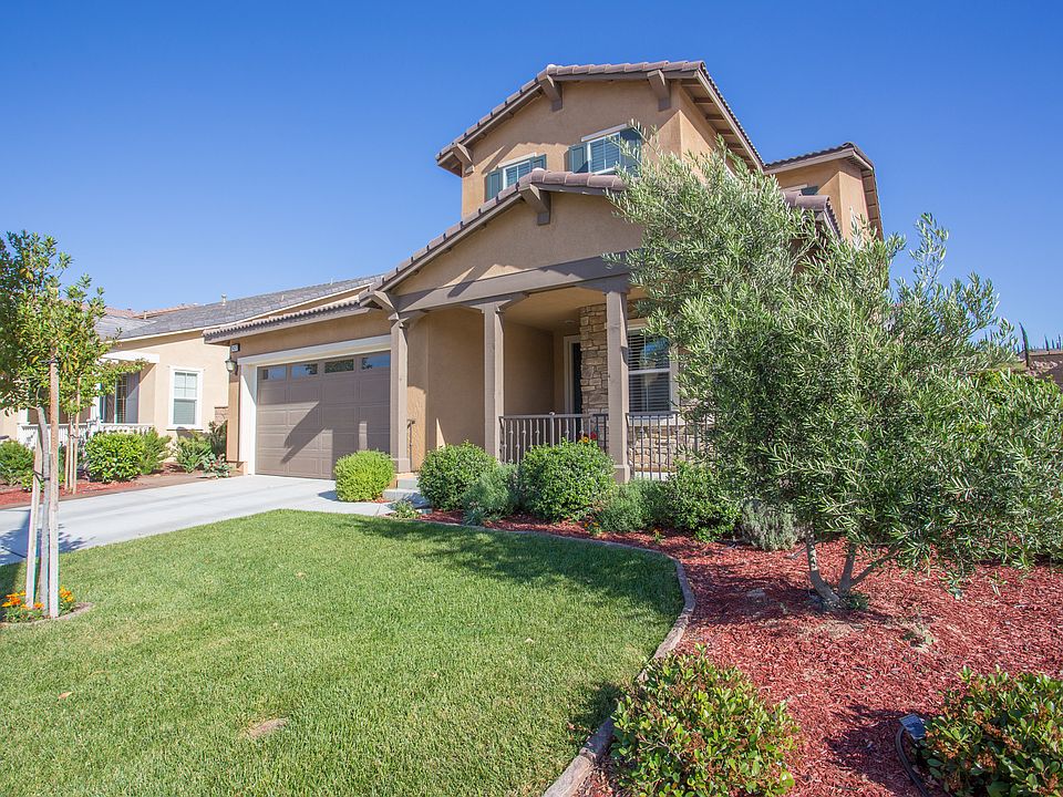 Morgan Hill's Finest Pool Home Available, this home features an abundance of stunning upgrades, great view, and a pool. From its sheer elegant wide-plank tile floors to the custom paint throughout in cool neutral tones, and plantation shutters, this interior defines dramatic. The home includes a formal living room, formal dining room and a bedroom and full bath downstairs. The kitchen boasts an island, breakfast counter, walk-in pantry, and features rich, espresso-stained cabinetry with modern pulls, slab granite counter tops, and full backsplash detail made of polished stone. Huge kitchen is outfitted with stainless appliances including 6-burner gas cooktop, microwave, dishwasher and built-in double ovens. Opposite the kitchen is a spacious family room with gas fireplace. Upstairs features a private master suite with a large balcony, from which there is a lovely view, walk-in closet and pristine bath with dual sink vanity and separate tub and shower enclosure. Three secondary bedrooms, tech center, full bath and convenient upstairs laundry room complete the second floor. The backyard features professional landscaping with partially covered, stamped concrete patio, lawn area, sparkling pool and gas fire pit with attractive blue fire glass. Morgan Hill Clubhouse has so many amenities: pool, spa, tennis, game room and a gym. This home is perfectly located and close to wineries, golf, shopping & Pechanga Casino.