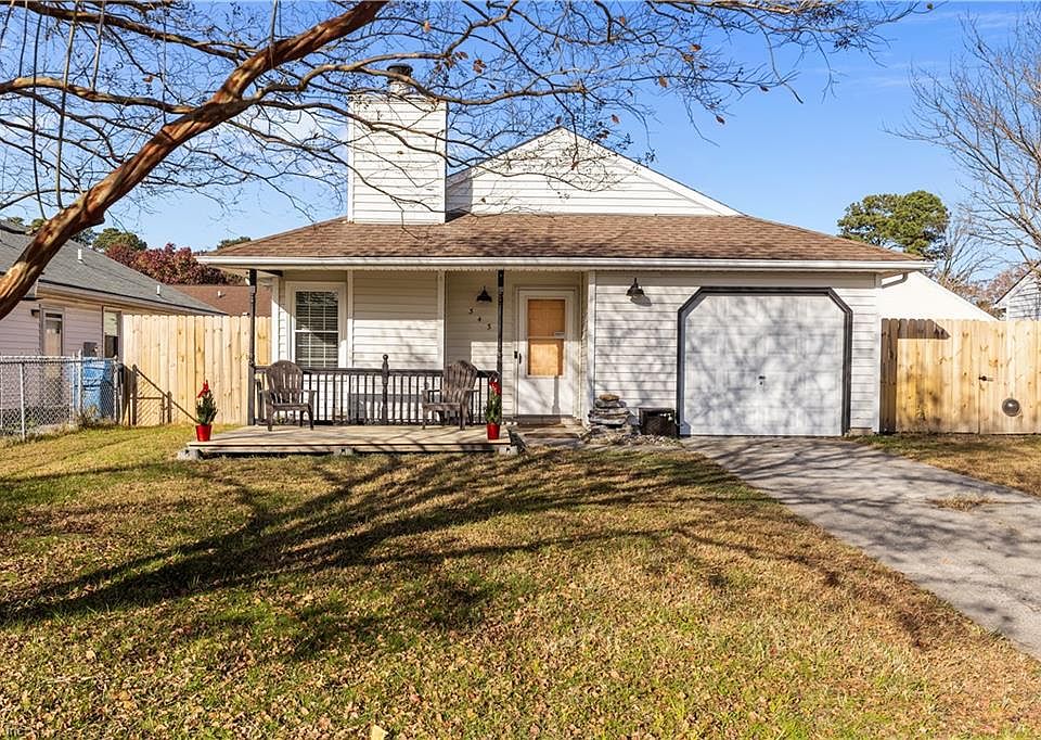 This 3 bedroom, 2 bathroom, one-level home, centrally located in Virginia Beach is the one you've been searching for! Convenient to interstate, military bases, Town Center and quick trip to the Oceanfront. Brand new flooring throughout, plus new kitchen appliances and a freshly painted interior make this home easy to move in and make your home! Vaulted ceilings and a cozy wood burning fire place in the living room. Separate dining room with chair rail detailing. Primary bedroom features dual closets and en-suite bathroom. Attached one car garage, spacious fenced yard, and cul-de-sac location. No HOA! Some photos are virtually staged. Schedule your showing today!