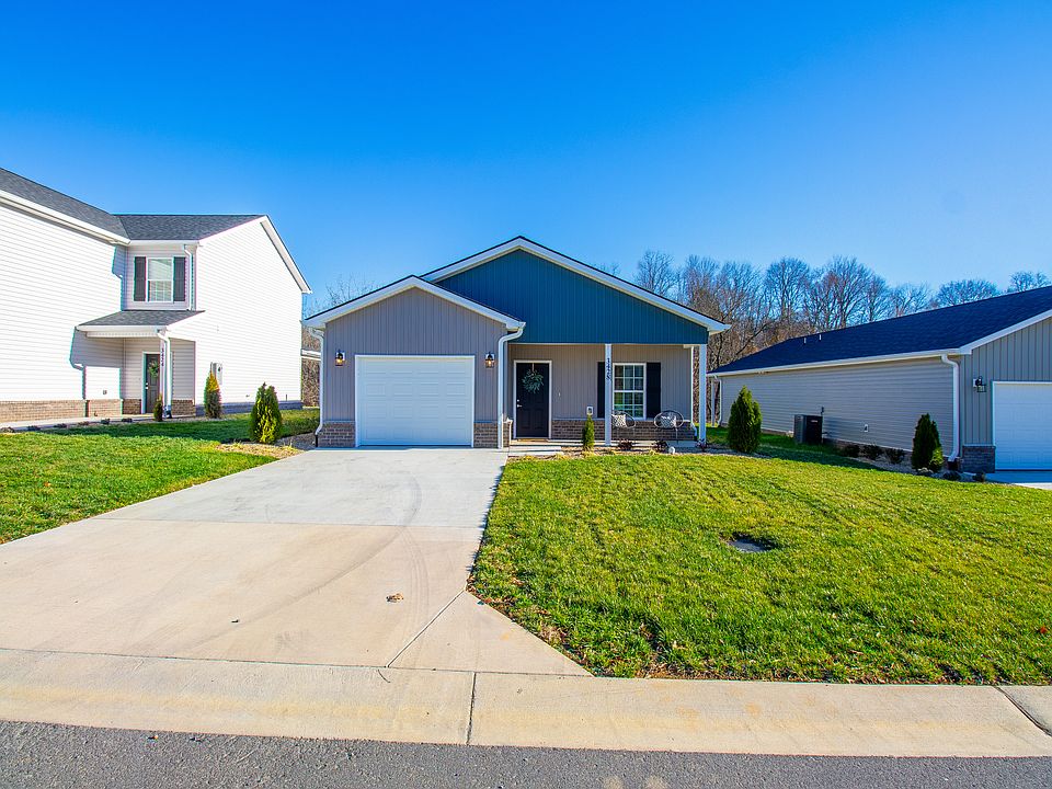 NEWER CONSTRUCTION, single family home for lease! One level living with 3 bedrooms, 2 baths and a 1 car garage. This open floor plan home features LVT flooring throughout and is conveniently located in Kingsport City Limits. The open concept plan features a large living room that is open to the kitchen. The kitchen offers white cabinetry, granite countertops, pantry, and stainless steel appliances. The master suite features double vanity sinks and large walk-in closet with laminate shelving. 2 additional bedrooms each with ample closet space, another full bathroom, laundry room and mud room complete the home. The Settlement at Frylee Ct is a single family rental neighborhood and is zoned for Kingsport City Schools. Lawncare and Pest control is included in rental price.
