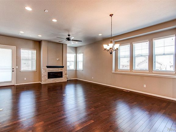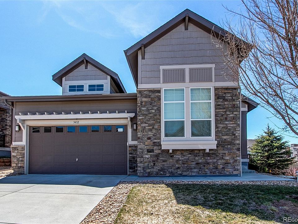 Terrific home in The Meadows, close to shopping and dining, parks and Rec Center with pool. Beautiful hardwood floors throughout the main level. Gourmet kitchen has slab granite countertops and island, tile backsplash, plenty of cabinets and china cabinets, plus stainless steel appliances including double oven and gas cooktop. The living room features a cozy gas fireplace with tile accents and mantle. The large primary bedroom has a walk-in closet with organizers and a beautiful tiled bath with two vanities and a full-sized shower. Lots of room for play with a finished basement rec/media room. Entertain on the large covered patio overlooking the fenced yard, perfectly suited for a barbeque. Home has dual HVAC zones (one for each level), circuit/wiring for TVs in family room upstairs, the primary suite and the great room in basement. Front lawn is cared for by HOA and snow removal up to the front porch. Will consider one small to medium sized dog. One year lease.
