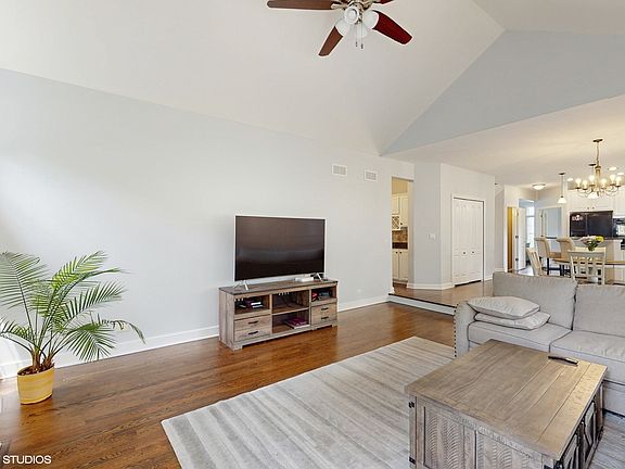 Warm, move-in ready home in Tall Grass with new roof (2023), new A/C (2025), 3-car garage, finished basement, and fresh updates throughout. Step into a bright two-story foyer with a graceful winding staircase that opens to a sun-filled living room with vaulted ceiling and an elegant dining room with tray ceiling and rich hardwood floors-perfect for hosting friends and family. The updated white kitchen features refinished cabinetry, granite counters, a spacious island, and a convenient Butler's Pantry, flowing into a cozy sunroom with its own fireplace for morning coffee or quiet evenings. The inviting family room offers a dramatic floor-to-ceiling brick fireplace, vaulted ceilings, skylights, and gleaming hardwood floors, while a private main-floor office with French doors and built-ins creates an ideal work-from-home space. Upstairs, the generous primary suite feels like a true retreat, boasting tray ceilings, two walk-in closets, and a spa-like bath with whirlpool tub, double vanity, skylight, and separate shower, plus three additional bedrooms for family, guests, or hobbies. The finished basement adds valuable extra living space with a half bath-great for a rec room, gym, playroom, or media area. Outside, enjoy a beautifully landscaped yard and low-maintenance deck for summer barbecues, relaxing under the stars, or simply unwinding at the end of the day. All of this is nestled in the highly sought-after Tall Grass community, renowned for its top-rated schools, resort-style pools, tennis courts, walking paths, parks, and vibrant clubhouse, with quick access to Route 59, shopping, dining, and the charm of Downtown Naperville just minutes away.