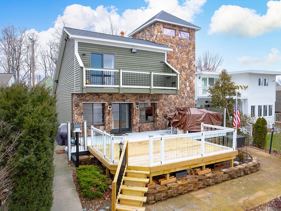 Beautiful waterfront home with 45 feet of frontage on private, all-sports Rush Lake! Home features 3 bedrooms, 2 full baths, more than 2000 square feet and lots of updates. Enjoy gorgeous views of the lake from the living room & kitchen. Dining room has a lovely stone fireplace, hardwood flooring & vaulted ceilings featuring wood accents. Warm hardwood flooring also spans the length of the living room, which features a new electric fireplace and access to the deck overlooking the lake. Open-concept kitchen features stainless steel appliances, a skylight & a breakfast bar for extra seating and prep space. Enjoy a master retreat with a fully renovated ensuite bath featuring a beautiful tiled walk-in steam shower and private deck with lake views. Updates include a new roof (2022), well pump (2022), fresh paint inside & out, including trim & garage (2021), and new carpet in master bedroom & stairs. Other features include all cedar closets & heated garage. Be lakeside this summer!