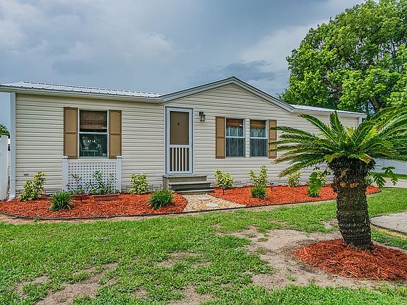 Great Wesley Chapel location and many upgrades and updates. Fully furnished, large spacious lot completely fenced for privacy and new metal roof. All new stainless appliances and new energy efficient air conditioning unit. Large living room welcomes you into this 2/2 manufactured home leading to the dining area and updated kitchen. Each bedroom has a walk-in closet and updated bathrooms for ease and accommodation. Outside the carport keeps your vehicle out of the sun and rain (280 sq ft). You will love the extra detached workshop with electric and plumbing (120 sq ft). The huge storage building offers lots of space (385 sq ft) and an RV hook-up is on site for ease and convenience. Relax and entertain with ease and comfort in the Wonderwall Florida room (280 sq ft) with its own air-conditioning. Inside laundry and new flooring complete the picture on this outstanding value.