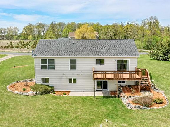 Escape to the country! YES-SIREE-BOB All you are seeking, you will find here! Settle into the peace and quiet of this 1 level home on 5+ acres. 3 bedrooms, 3 baths, 3 car attached garage. Granite countertops with custom back splash, Stainless steel appliances, vaulted ceilings, new decking, hardwood floors, gas fireplace. Fully finished lower level with a walkout. Main floor laundry. PLUS - The Garage-Ma-Hall of pole buildings! 64 x 30 pole building with concrete floor and 100 amp service - 14 foot door - plenty of room for all your toys and more!