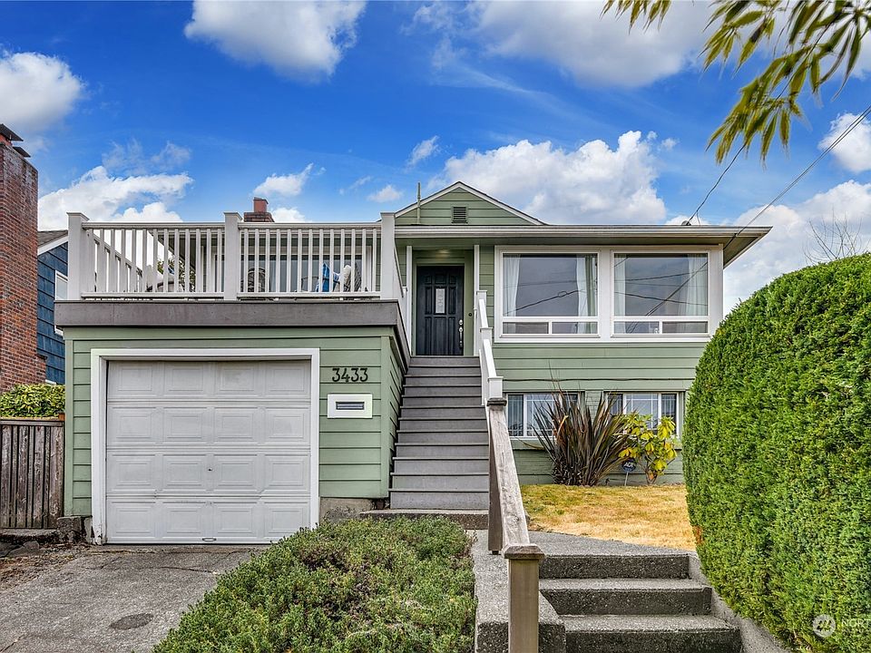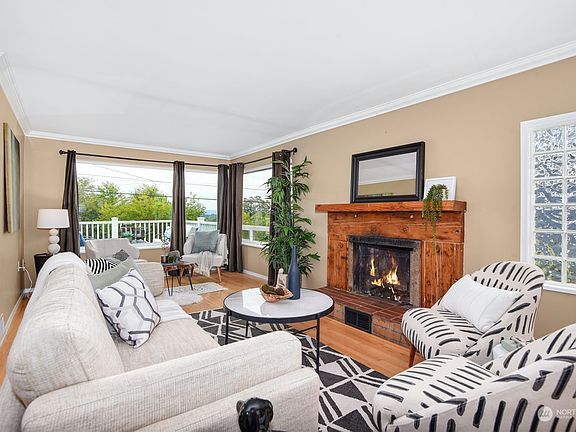 Big MT Rainier views from spacious, updated mid-century home. The bridge is open! Wonderful Belvidere neighborhood. Huge living room with hardwood floors and wood-burning fireplace. Open, Chef's kitchen, deep island w/newer Stainless appliances and cool vinyl plank flooring. Maple cabinets & granite counters. Dining space. 3 BR on 1 FLR. Oversized spaces. Organized closets, fans and Andersen wood slider. Primary BR has remodeled 3/4 BA; newer main BA. Lower level has Rec RM, den/music area, BA+utility room. Ample storage. Hardie-plank exterior siding and newer quality windows. Brand new roof! Garage. Newer Cedar fence. Apple trees, patio, grass and garden space. EZ access to DNTN, buses, Rapid Ride C+nearby parks/shopping. Motivated Seller!