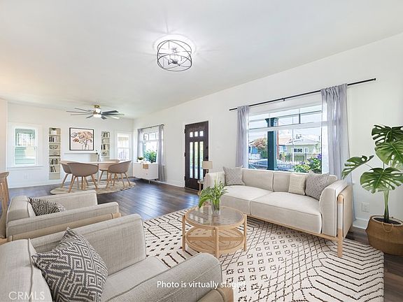 Immerse yourself in timeless sophistication with this beautifully refreshed 1,479 sq ft Craftsman-style home, nestled on a generous 6,390 sq ft lot in the historic heart of Jefferson Park. Built in 1924 and meticulously renovated, this single-family residence offers three inviting bedrooms and two full bathrooms. Inside, sun-drenched living and dining spaces with character-rich architectural details flow seamlessly into a chef-ready kitchen featuring quartz countertops and stainless-steel appliances (range, oven, dishwasher, garbage disposal). The primary suite is a tranquil retreat boasting dual sinks and a luxurious en-suite with a soaking tub and marble accents. Thoughtful upgrades throughout include recessed lighting, upgraded laminate flooring, central heat and A/C, dual-pane windows, and an efficient indoor laundry area conveniently located near the kitchen. Step outside to enjoy a private, fenced-in front yard ideal for gardening, relaxing, or hosting plus on-site parking behind a gated driveway, ensuring convenience. There is also a shared guest house on the lot a 2-bedroom, 1-bath unit with a cozy fireplace that's available for lease. Perfectly located on a tranquil, tree-lined street, this home places you moments from Jefferson Park, the Expo Line, USC, Downtown L.A., Culver City, and vibrant West Adams destinations.