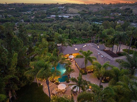 Exquisitely remodeled single-story home on 2.34 acres in the charming community of Olivenhain. Spectacular resort-like grounds with gorgeous westerly views. The property features a solar heated pool with waterfalls and slide, spa, outdoor kitchen, firepit, fruit trees, full track around the perimeter of property, soccer field, playground, lots of separate yard space and room for pickle ball or sport court. Every part of this home has been updated with no expense spared.  Wonderful functional floorplan with four bedrooms and four full baths that have all been remodeled. Inviting common rooms, including a living room with fireplace and bar, family room off the kitchen with fireplace, separate dining room with adjacent, charming reading room. Beautiful cook’s kitchen with Viking gas cooktop, 48” SubZero, top of the line stainless appliances, large sit-up center island, dining area and adjacent office/homework room.  Primary suite with fireplace, spa-like marble bath, custom walk-in closet, and adjoining room that is perfect for office, exercise room or nursery.  Oversized laundry room with quartz countertops, workspace, lots of storage and dual washer/dryer space.  Four car garage that opens to mudroom with plenty of storage. Lots of additional paved parking, fully fenced yard zoned for horses and gated entry.  Owned solar with EV port.  Plans available for guest house and plenty of space to build one. No homeowners fees or Mello Roos.….this is Olivenhain at its finest!! Don't miss video!