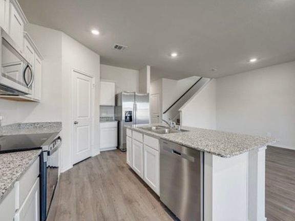 Call by Nov 12th. Brand new construction. Never lived in and it SHOWS. Stainless Steel Fridge and Maytag Washer Dryer already there for you! Two bedrooms downstairs! Two more upstairs for a total of FOUR bed with THREE full baths. Ultra energy efficient home features granite countertops, wide open floor plan, recessed ceiling lights, ceiling fans, Across the street from wide open area.