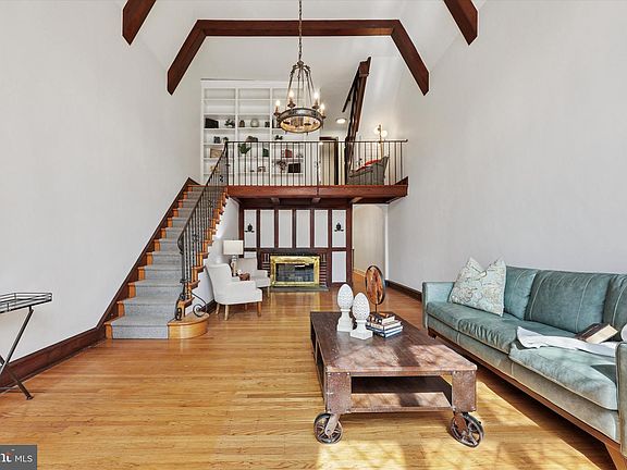Welcome to this distinctive 4-bedroom, 3-bath Tudor-style townhome located on a picturesque, tree-lined street in the desirable East Falls section of Philadelphia. This home effortlessly blends historic charm with modern conveniences, offering the perfect balance of character and comfort. As you approach, you’ll be greeted by the original solid wood front door and stunning leaded glass windows. Step inside to find beautiful hardwood flooring throughout and a spacious living room featuring a dramatic 2-story cathedral ceiling with exposed wood beams and a cozy nook with a fireplace—perfect for relaxing evenings. The formal dining room flows into the modern kitchen, equipped with stainless steel appliances and rich cherry cabinets, ideal for any home chef. Adjacent to the kitchen is a versatile family/bonus room, currently used as a craft studio, along with a full, updated bathroom completing the main level. The second level offers even more charm with built-in bookcases and a cozy reading nook overlooking the living room below. The owner’s suite features an en-suite bathroom and French-style doors leading to a spacious, covered deck with views of the separate rear bonus yard—perfect for morning coffee or evening relaxation. On the upper level, you’ll find three additional generously sized bedrooms and a vintage black-and-white tiled bathroom that adds to the home’s timeless appeal. Outside, off-street parking is available at the rear, and across the alley, you’ll discover a delightful patio for outdoor dining. The upwardly sloping garden is a gardener’s dream, with compost-amended soil ready to yield raspberries, asparagus, squash, artichokes, and more! Enjoy the perks of city living with Fairmount Park just steps away and the vibrant nightlife of Main Street Manayunk only minutes from your door. You’ll also be close to movies, fine dining, riverfront restaurants, and boutique shops. Commuting is a breeze with easy access to Kelly Drive, East Falls Bridge, Martin Luther King Drive, and SEPTA’s East Falls Train Station. Don’t miss your chance to own this one-of-a-kind home that offers historic charm, modern amenities, and an unbeatable location!