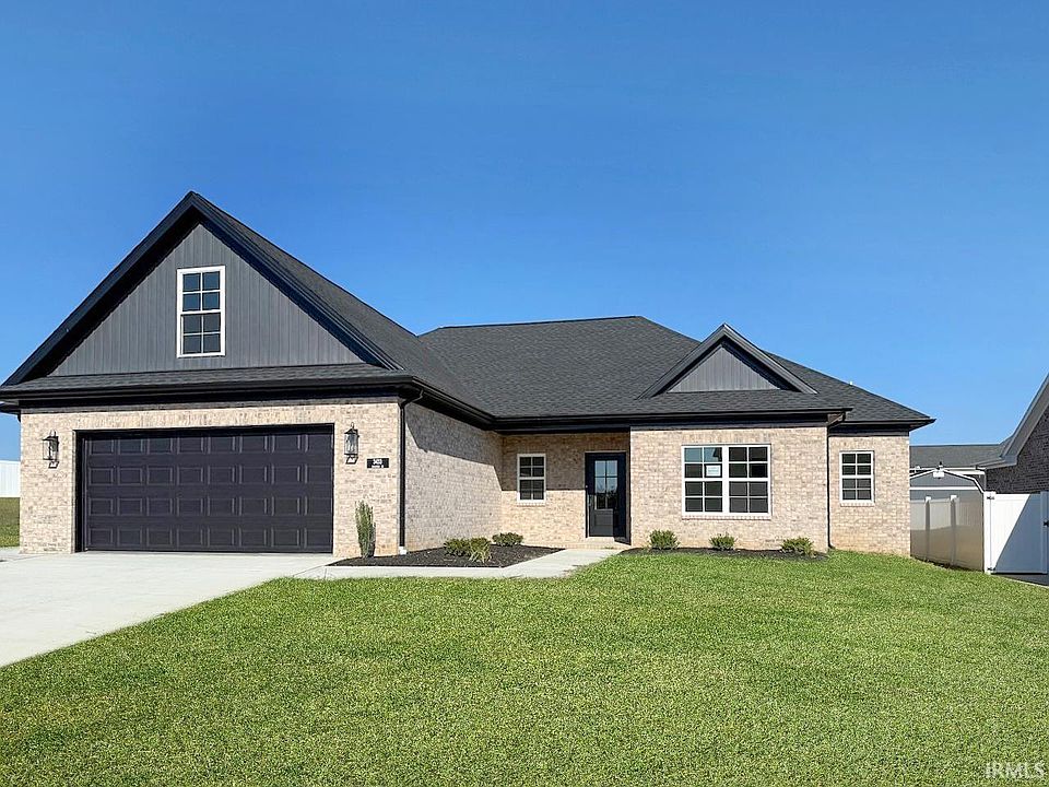 Brand new full-brick home built by John Elpers Homes & Gen 3 Contracting, located in the highly desirable Centerra Ridge subdivision on Evansville’s East Side. Offering over 2,200 square feet, this 4-bedroom, 2-bathroom home is filled with high-end finishes and thoughtful design. Inside, you’ll find 9-foot ceilings, abundant natural light, and a spacious open floor plan centered around a corner gas log fireplace in the living room. The chef’s kitchen showcases custom Amish-built cabinetry, Quartz countertops, tile backsplash, a walk-in pantry, and an upgraded appliance package. The luxurious owner’s suite features a spa-like bathroom with a tiled shower, double vanity, and a large walk-in closet with direct access to the laundry room. Additional bedrooms are generously sized and offer flexible use for family, guests, or a home office. The oversized garage is extra wide, providing ample room for a workshop, workout area, or even entertaining space—perfect for hosting this season’s football games.