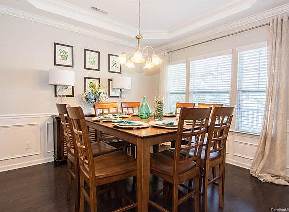 Like new 1-yr old home in convenient Fox Ridge. Beautifully decorated, move-in condition. Seller made all the best cosmetic selections. Fenced backyard on cul-de-sac private wooded lot great for pets! Walk to amenities, easy drive in any direction, close to 521, easy to 77 or 485. Great value w/ 3-car garage, huge drop zone, Kitchen feat. 2-tier island, granite, stainless, b'fast to patio, Butler's Pantry, prefinished HWs on main, Ofc/BR on Main. Master w/Sitting Room. Front porch. 10x12 patio.