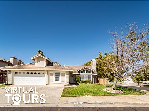 Every REX home comes with a 30-day buyback guarantee. Terms and conditions apply. Beautiful 4 bedroom, 2 bath home with approx 1750 square feet in Palmdale! Situated on a cul de sac in the West Ranch community, this home has amazing curb appeal with a shade tree framed with large pebble rocks, and is lovely inside and out! Soaring ceilings, a large marble fireplace, plush carpeting and large windows that let in abundant natural light are featured in the gorgeous living room. A gourmet kitchen features black granite countertops with matching backsplash, wood cabinetry, stainless steel and black appliances and tiled flooring. There is a guest room with tons of privacy, and the master offers high ceilings, a walk-in closet and an en suite bathroom with dual sinks on a large elegant vanity, custom walk-in shower with bench seating and a separate water closet. All of the bedrooms offer double mirrored sliding closet doors with closet organizers, ceiling fans and soft natural lighting. Custom light fixtures throughout. Gated dog run in backyard! Two car garage and room for another 3 cars in driveway. Close to shopping, dining, schools and easy access freeway. A really special home inside and out! BTVA Unpermitted additions
