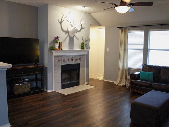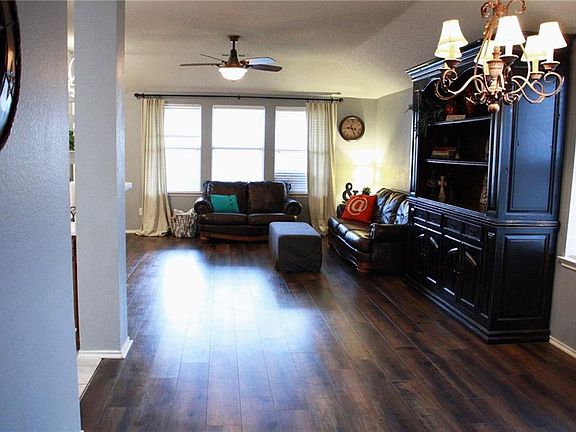 Well-maintained one story home in Northwest ISD, walking distance from Hughes Elementary with NO HOA. Open floor plan, lots of light, 10 foot ceilings, all hard floors (no carpet), Aquaguard (highly water resistant) laminate flooring, no gas bill, Wi-fi thermostat controllable by smart phone, separate garden tub and shower in master, large covered back porch, sprinkler system, built in garage cabinets, and storage shed. Three bedrooms, two baths, fireplace, one living area, two dining areas, divided garage with great curb appeal! Close to 35W, 377, and 114 and most daily errands can be done within a 3 mile radius! Seller is motivated. Bring us an offer!