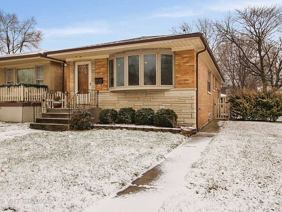 Beautiful, solid brick bungalow with great curb appeal. 3 bedrooms with hardwood floors and 2 full baths. Kitchen redone with bamboo flooring and stainless steel appliances. Basement is partially finished boasting a family room, office/bedroom and full bath. 2 car detatched garage has a screened in patio. Great location close to public transportation, parks and shopping.