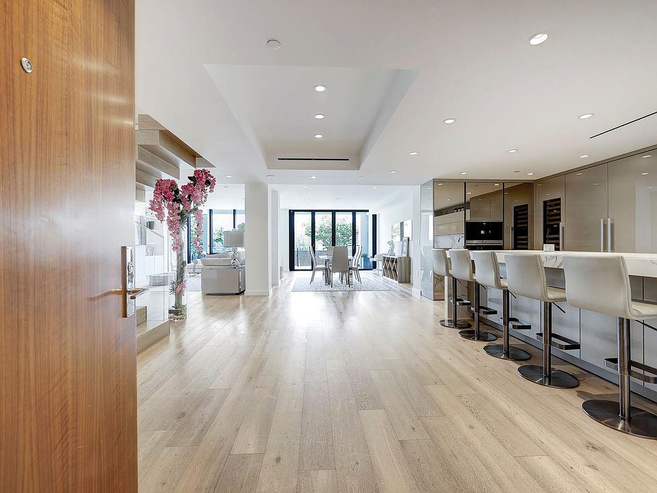 Extraordinary custom built two story townhome with a large private garden space inside a full service luxury high-rise. Large, elevated first floor terrace with nano-wall doors to open for indoor/outdoor entertaining. Beautiful, custom kitchen opens to living and dining areas. Three bedrooms, each with ensuite baths, and a first floor office/study with a full bath. Gorgeous second floor primary suite with private terrace. Primary bath features spa-like walk-in shower, dual sinks, soaking tub and large custom walk-in closet.