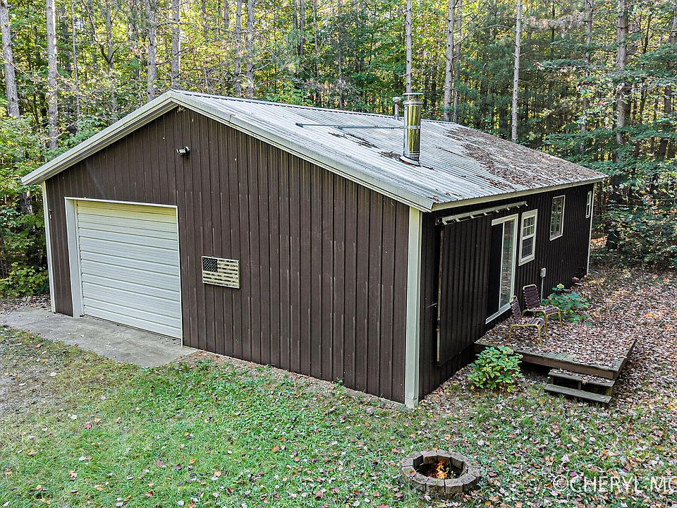 Cabin Retreat on 2.52 Acres Near State Land! Consisting of 1280 sq ft including the garage, this versatile property is ideal for both hunters and those seeking a peaceful getaway. The cabin offers comfortable living quarters with a welcoming living room featuring a wood-burning fireplace, sliders to the deck, and beautiful views of the property. The kitchen is equipped with newer appliances, plus a bedroom and full bath for convenience. A garage and storage area provide plenty of space for equipment and gear. All furnishings within the living quarters, as seen at showing, are included in the sale. Forced air heat, window unit air conditioning. Set on 2.52 acres and located just one hour from Grand Rapids, this property combines privacy, recreation, and comfort ? making it a perfect hunting base, weekend escape, or year-round retreat. For those looking for additional space and opportunities, the neighboring property at 3390 E Baseline is also for sale, offering 13.96 acres, a home, pole barn, and frontage on Flinton Creek. Home does not have laundry facilities. Contingent upon lot line adjustment currently in process!