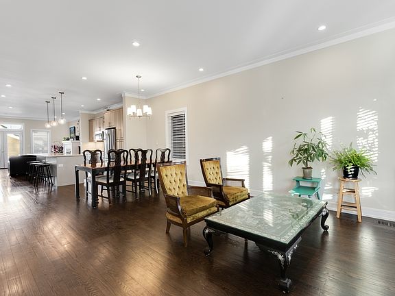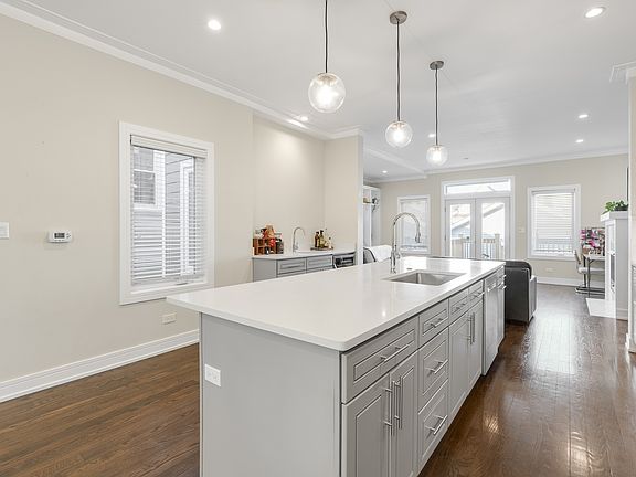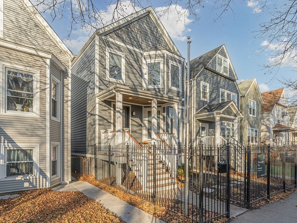 Check out the 3D Tour link!!! Spectacular 3 year-old gut-rehab single family, 3200 sq ft home featuring 4 bed and 3.5 bath in an amazing Avondale location. Welcoming open-concept wide layout with tall ceilings and high-end furnishings throughout. Sun-filled living room with large front windows and crown molding. Gourmet kitchen has beautiful custom grey cabinetry blended with white quartz countertops, stainless steel Bosch appliances, white tiled backsplash, large island with sink, and a built-in wet bar with beverage cooler. Powder room conveniently located on the main level. The second level features two guest bedrooms, a full guest bathroom, laundry, and a primary master suite offering a large walk-in closet and an amazing spa like ensuite master bath. No single family home is complete without a finished lower-level with a huge recreation/family room, large storage room, another guest bed, and full bath. Oversized 2 car garage with large rear yard and deck. Added Hollandstone grey pavers in the rear yard (2020) and custom interior stair runners and Hardie Board siding (2017). A+ location on a quiet 1 way street, 1 block from the Blue Line with convenient highway access.