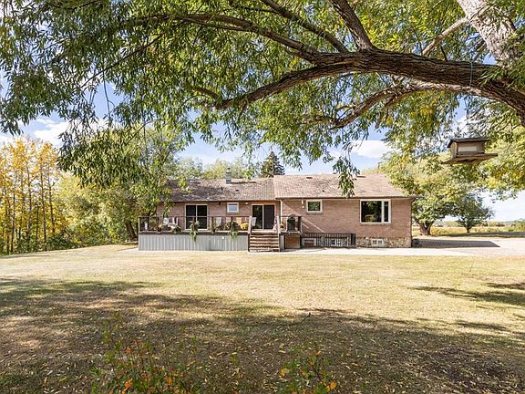 Welcome to your private country retreat — a peaceful acreage surrounded by mature trees and beautiful farmland, all conveniently set just off pavement. This charming bungalow sits on 2.91 beautifully landscaped acres and blends timeless country character with modern comfort. Inside, you’ll find over 1,600 sq ft of main-floor living with 4 bedrooms plus a den and 3 bathrooms, offering plenty of space for the whole family. The spacious, bright kitchen features abundant cabinetry, an oversized breakfast nook, and a dedicated dining area—perfect for gathering and entertaining. The family room’s wood-burning fireplace adds cozy warmth and character, while the spacious primary suite includes a full ensuite for added comfort and privacy. The finished walk-up basement provides excellent flexibility, featuring a cozy recreation area, pool table for game nights, and a separate entry—ideal for teens, guests, or a home-based business. Step outside and enjoy the serenity of your own park-like yard with lush mature trees, a beautiful large back deck, garden area, and a fire pit space ready for evenings under the stars. The impressive 28' x 56' detached garage/shop offers one side (16' x 56') fully heated with furnace and radiant heat, plus 220V power, making it perfect for vehicles, hobbies, or workshop use. Located just 10 minutes to Bowden, 15 minutes to Innisfail, and 18 minutes to Olds, this property offers the best of both worlds — peaceful country living with quick, easy access to the Highway 2 corridor. If you’ve been dreaming of a private country lifestyle surrounded by natural beauty and space to breathe, this property is a must-see.