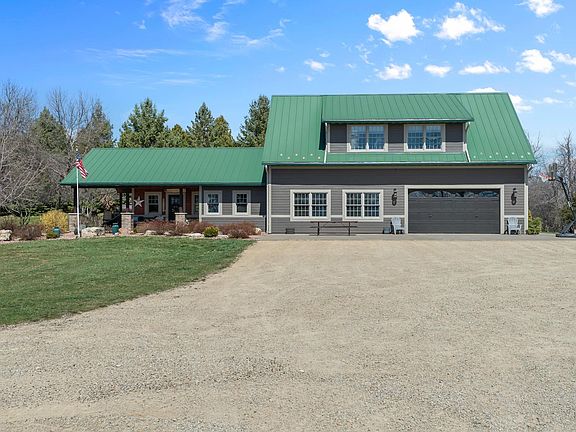 Discover the tranquil "Old Buffalo Ranch," nestled just north of Goodhue, MN. Pass through the gated entrance into a meticulously landscaped sanctuary boasting premium amenities. The main residence, completed in 2013, features vaulted ceilings, granite countertops, tile floors, and three fireplaces. An attached garage leads to an upper-level living space with its own entrance, perfect for additional living or rental income. Outside, find a 36'x56' pole shed, a heated workout space, and a workshop. The property is a hunter's paradise with 3 deer blinds, food plots, and a trail system. 49 acres are enrolled in MN RIM program, ensuring wildlife preservation.