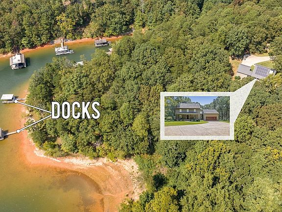 Welcome to your own private retreat on Lake Lanier! Tucked away on over two acres of peaceful woods, this charming lake house was designed with both comfort and sustainability in mind, featuring passive and active solar elements that make living here as smart as it is beautiful. With three bedrooms and two and a half baths, there's plenty of room for family and friends to gather. The open living spaces are filled with natural light and offer stunning views of the water and trees, creating a cozy atmosphere that makes you feel right at home the moment you walk in. Step outside and enjoy a gentle walk down to the shoreline, where more than half a mile of private waterfront is yours to explore. Two private docks make it easy to launch a boat, cast a line, or simply relax lakeside with a good book. Whether you're hosting summer get-togethers, making memories with the kids, or enjoying quiet evenings by the water, this property offers it all. Located in one of the most desired areas of Lake Lanier, this home combines privacy, nature, and endless lake fun-a true sanctuary for anyone looking to slow down and savor the lake life. The property has lots of beautiful old growth trees. Venetian plastered chimney in master bedroom and keeing room.