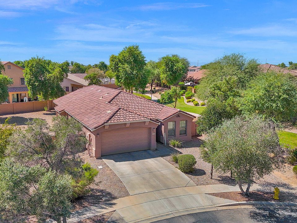 Stunning single level N/S facing home located on an amazing lot in Marbella Vineyards. The lot is massive and is located at the end of a cul-de-sac all by itself with no home in front of it. Brand new AC and recently painted. Owner's suite separate from other 3 bedrooms. Vaulted ceilings in both owner's suite as well as main family living area. Surround sound. Faux wood blinds, Home sits adjacent to walking trails and parks. Neighborhood is located in the award winning Chandler school disctrict. Close to shopping/restaurants/Gilbert Regional Park.