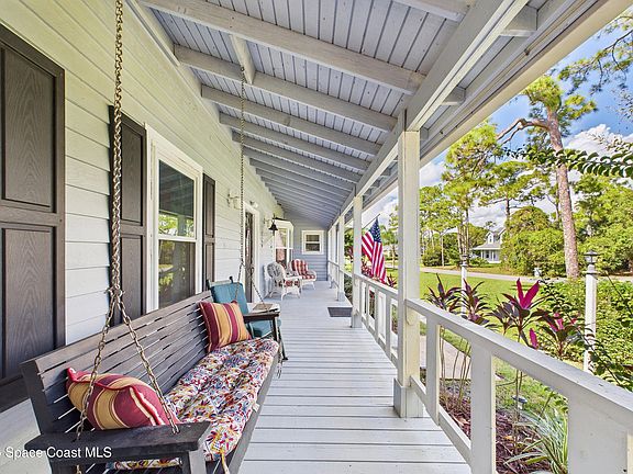 A step above the rest! This stunning 5-bed, 4-bath country-style home on a lush 1-acre lot in the prestigious, riverfront community of Rocky Point is ready for you! Enjoy the charm of a full-length wraparound front porch—perfect for watching rocket launches—and a circular back porch just steps from the screened-in pool with a tranquil stone waterfall. With two master suites, including a first-floor option with its own private porch, this home is ideal for multi-generational living. Inside, cozy up by the wood-burning fireplace and enjoy updates like impact windows, a 2020 roof, and 2022 A/C. Rocky Point offers privacy, prestige, and its own community dock along the Indian River. Come experience the lifestyle you've been dreaming of!