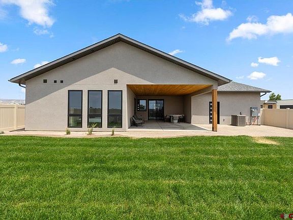 Exceptional craftsmanship and thoughtful design meet in this brand-new 3-bedroom, 3.5-bath home. Built with premium finishes and timeless style, every detail has been curated for comfort, quality, and durability. The home features Anderson 100 Series casement windows and fresco-finished walls. Interior walls are fully insulated for sound and efficiency, while 5/8 drywall adds durability and a quiet, refined feel. Details include site finished hardwood floors, solid core doors, and imported tile. The sleek, modern kitchen has MSI quartzite countertops and Samsung black stainless appliances. Step outside to a covered patio and a water-efficient native landscape, perfect for low-maintenance outdoor living. The front entrance is outfitted with architectural metal screening that provides shade and privacy. Additional highlights include an oversized 600 sq.ft. garage, washer/dryer, skylights, brick and stucco siding, and a complete irrigation system for convenience and sustainability. This home blends high-end materials with Western Slope charm.