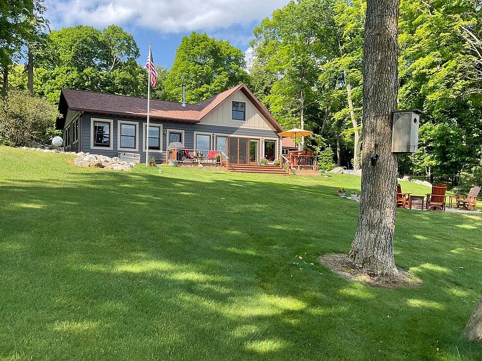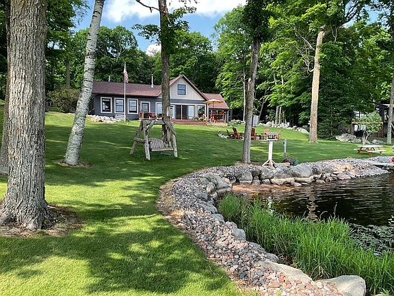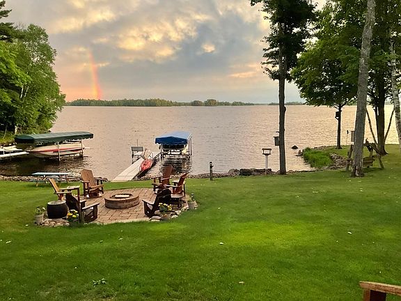 A Million-dollar view overlooking a massive wide-open stretch of the famous Turtle Flambeau Flowage! 168’ of level, South facing frontage offering beautiful swimming and all day sunshine. This impressive 4 bedroom 2 and a half bath home has been impeccably well maintained and extensively renovated! The stunning wall of waterfront windows highlight the remarkable lake views from the new great room, the kitchen/sitting area and Master Suite. The walls feature beautiful end matched basswood, knotty pine & hand-hewn half log, beautifully blended with the oak and maple hardwood flooring. Attached insulated and heated 30x26 garage, detached 30x24 garage, graveled extra parking area, blacktop driveway lined with huge stone landscaping, custom lakeside firepit patio and large deck. This gem is located in one of the most desirable areas on the Flowage. Must see this mesmerizing dynamic view and beautiful home!