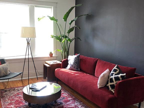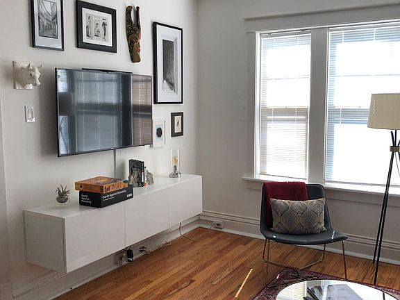 This dwelling is the perfect space to enjoy the second floor tree top views. Awesome remodel on this space. Beautiful IKEA Kitchen with tons of storage. Tons of light! 2 good sized bedrooms! Hi end finishes in both bathroom and kitchen! Refinished hardwood floors! All windows refurbished! New furnace and ac! Utility bills are easy! Laundry in basement. Balcony outdoor seating area featuring over the roof top views, great for those who rise with sun or need a shady spot to enjoy outdoor conversation and drinks in the evening. Owner pays for sewer, water, trash, and hot water.