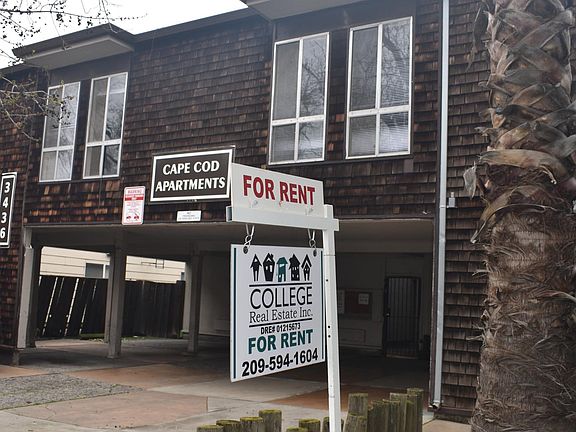 Gated Studio Apartment Located Near UOP with New Carpet and Parking Space Super clean studio apartment with one parking space. Located very close to the University of the Pacific. New carpet, paint and blinds. Wall heater and wall air conditioning. Walk-in closet. Refrigerator and stove. Owner pays water/ sewer and trash. Onsite laundry. Sorry, no pets. For information on showings and applications, contact College Real Estate, Inc, or check our website. Application fee $45.00 per adult. Virtual tour available on website. From Pacific Avenue, take Dave Brubeck west and turn left on Dwight Way to the Cape Cod Apartments. One year lease Owner pays water, sewer and trash Onsite laundry Managed by licensed real estate broker, College Real Estate, Inc, DRE#02055334